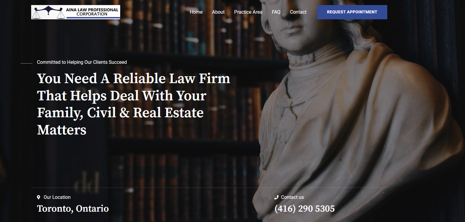 AINA LAW PROFESSIONAL CORPORATION is a general practice law firm that provides services to individuals, families, small businesses, corporations, and institutions throughout Ontario. We are strategically located in the heart of Scarborough, Ontario, and practice in the areas of Real Estate, Wills, Family Law, and Civil Litigation